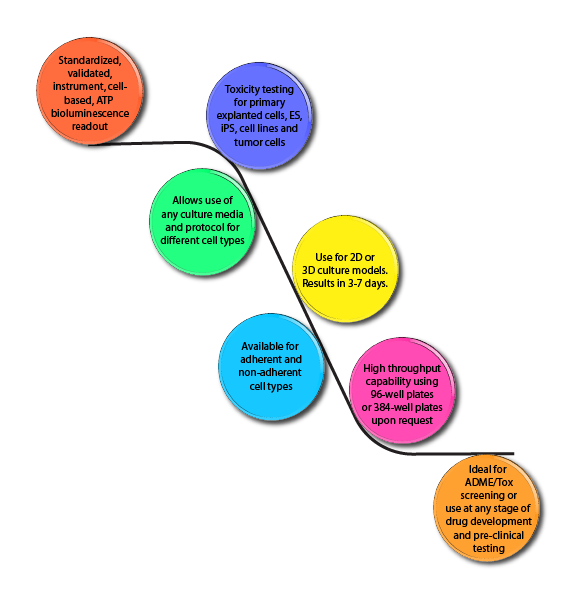 Fully Standardized ATP Bioluminescence In Vitro Toxicity Assay Platform for ES, iPS or other stem cell lines.