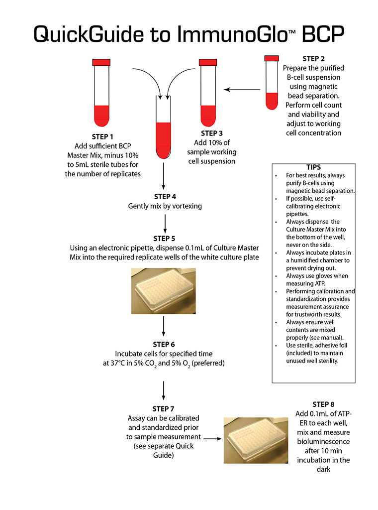 - ImmunoGlo™ BCP is specific for stimulating functional human B-lymphocytes.