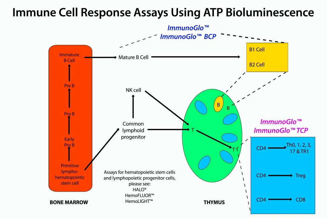 - ImmunoGlo™ is a general use functional immune cell proliferation assay where the investigator employs their own culture reagents and protocol for any type of immune cell.